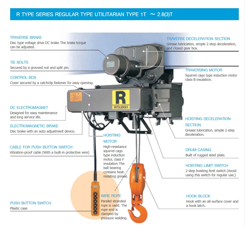 รอกสลิงไฟฟ้า Mitsubishi รุ่น R-2-HK ขึ้น -ลง 2 ทิศทาง